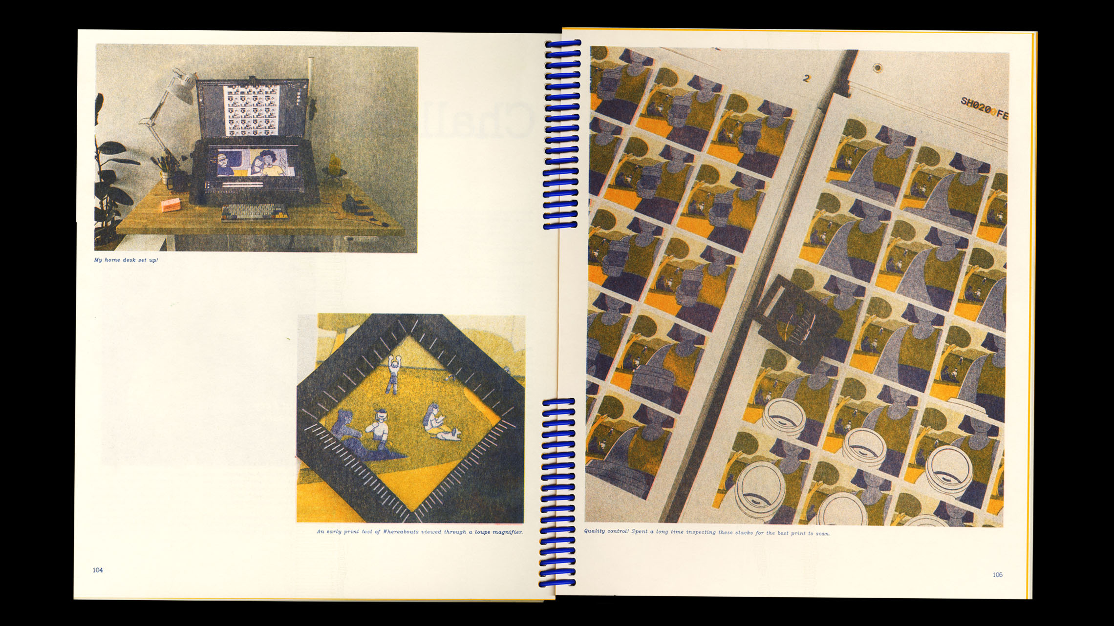 Featuring more than 150 pages of vibrant animation frames, Whereabouts offers an intimate look into the riso animation process, and a way to experience the film in a new, tangible form: an animation you can hold in your hands.
